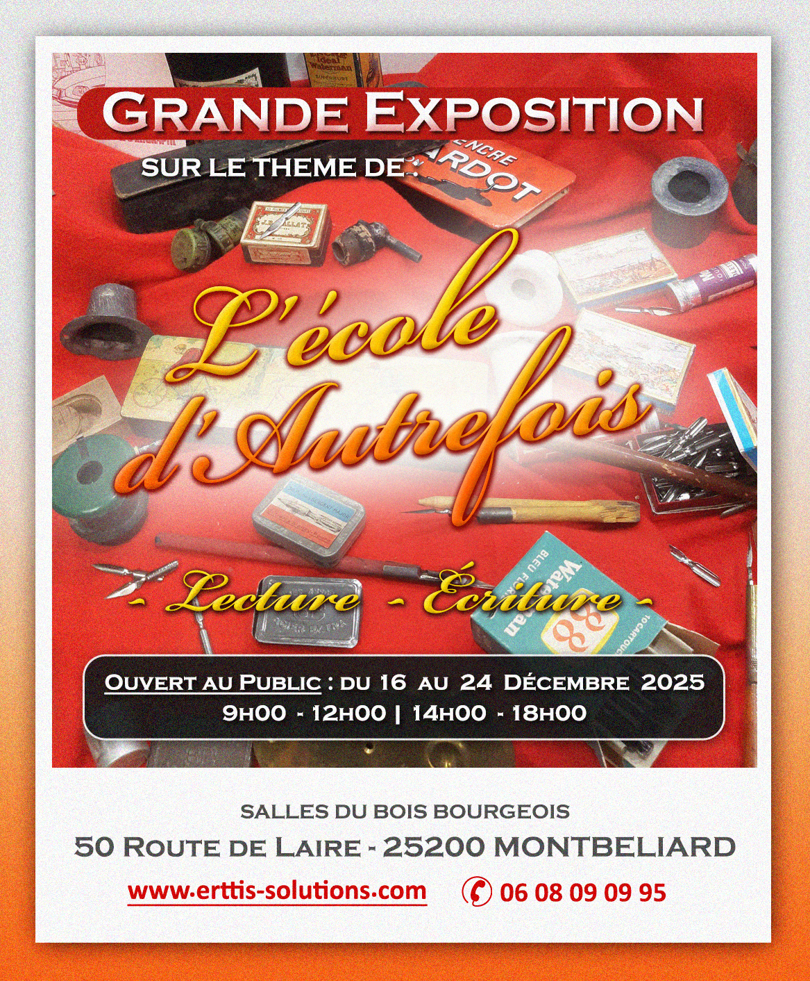 Reconstitution de salles de classes des années 1930 et 1950. Exposition sur l'évolution du matériel pédagogique sur un siècle (1880 à 1980). L'apprentissage de la lecture et l'écriture seront mis à l'honneur.